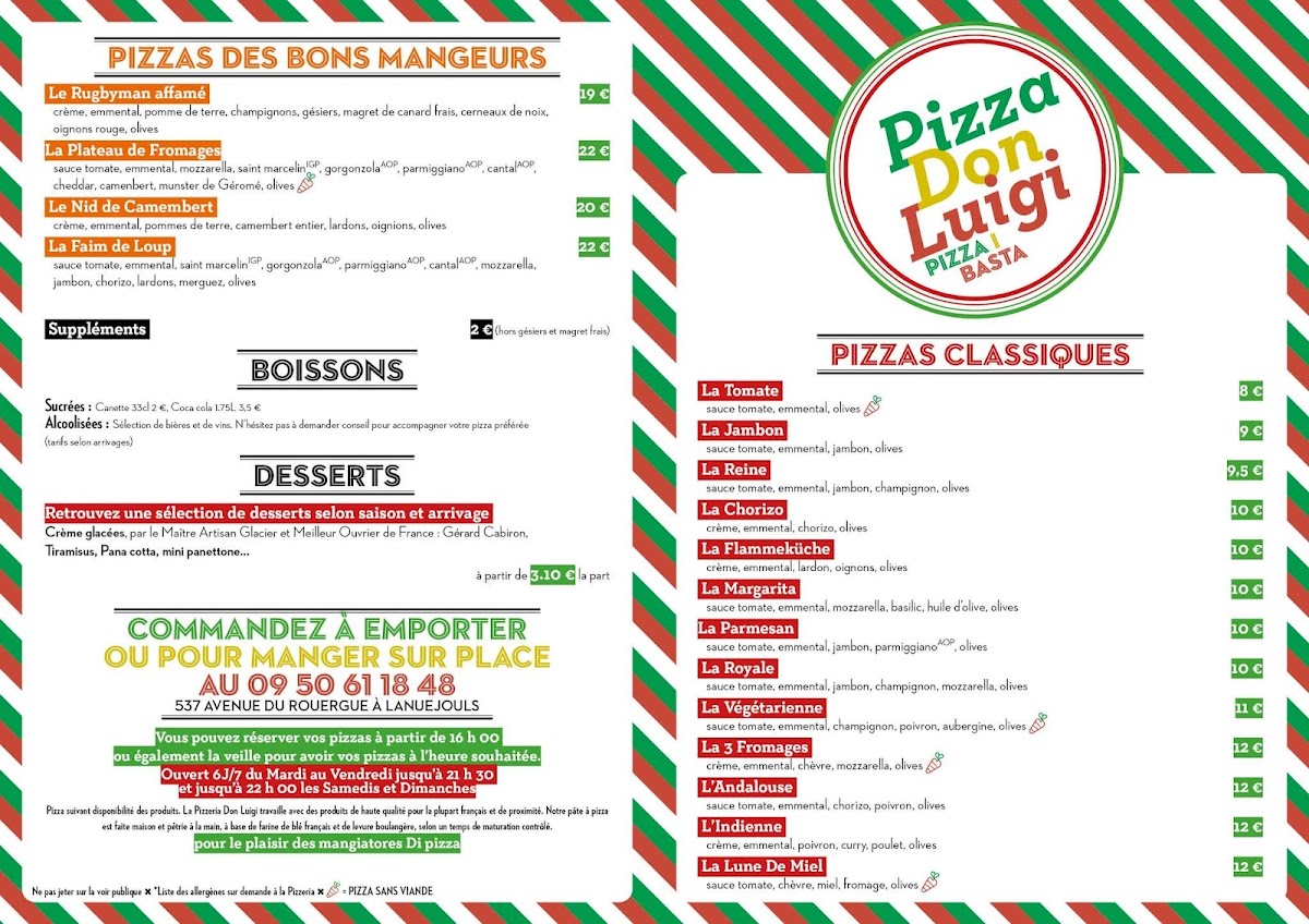 Welcome to PIZZA DON LUIGI, a delightful gem in Lanuéjouls, France, where exceptional flavors meet authentic Italian craftsmanship. Nestled at 537 Av. du Rouergue, this pizzeria has quickly become a favorite among locals and visitors alike.